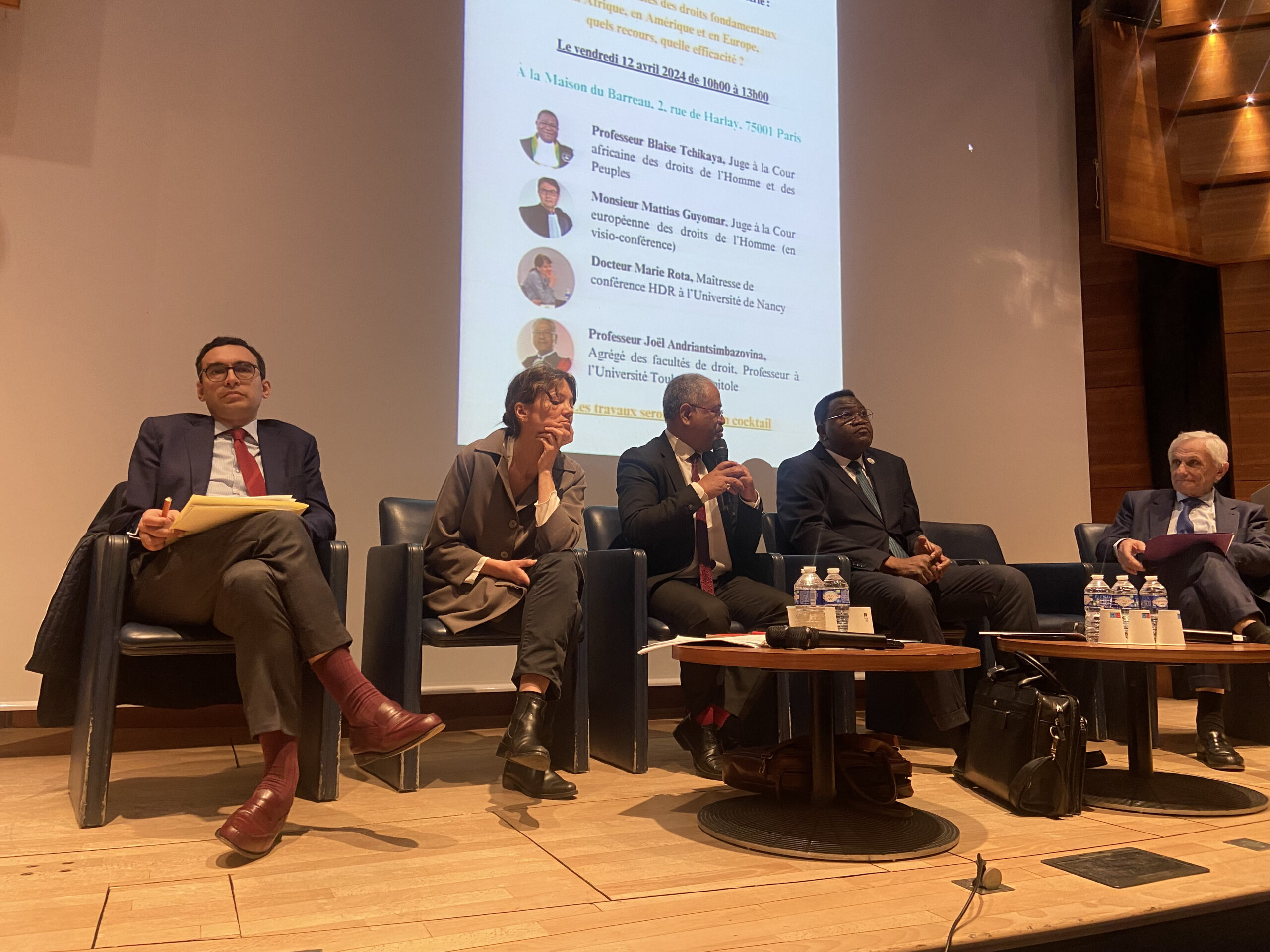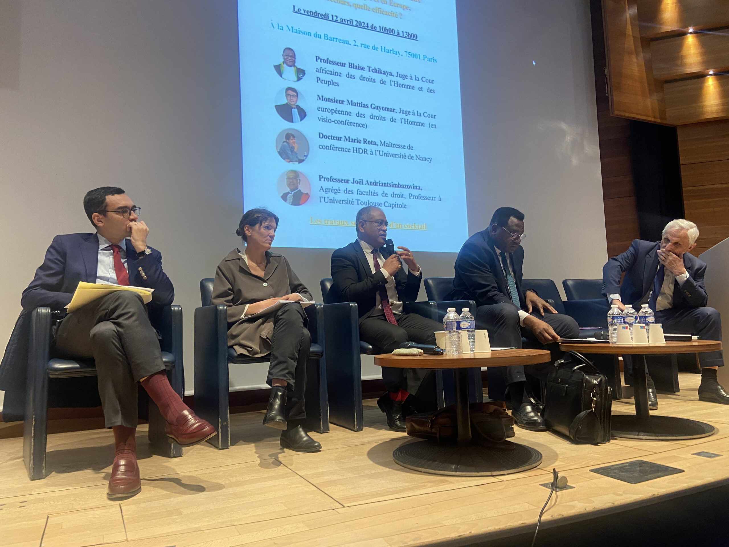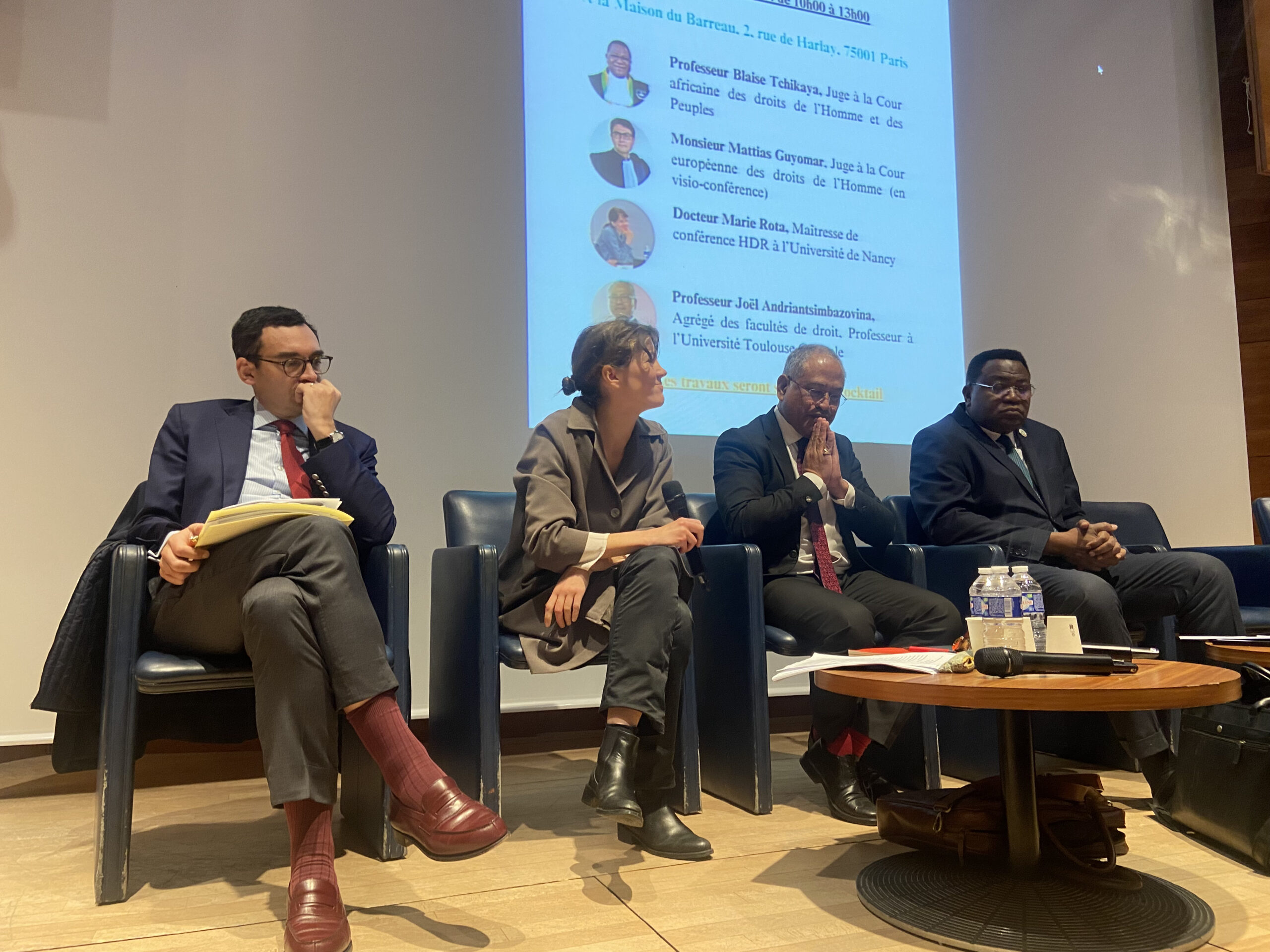 Dans le cadre de cette approche comparée, le Juge Blaise Tchikaya nous a éclairés sur le rôle et l’histoire de la Cour africaine des droits de l’Homme et des peuples, dont le rayonnement et la compétence en font une juridiction de choix pour les défenseurs des droits, lorsque dans leurs pays, les conditions ne sont pas réunies pour leur permettre d’accéder à une justice équitable, impartiale et qui se veut respectueuse des droits de la Défense. Nous avons également pu l’écouter sur le rôle de cette juridiction qui venu consacrer la notion de « Peuple » et le respect des droits de ces peuples.