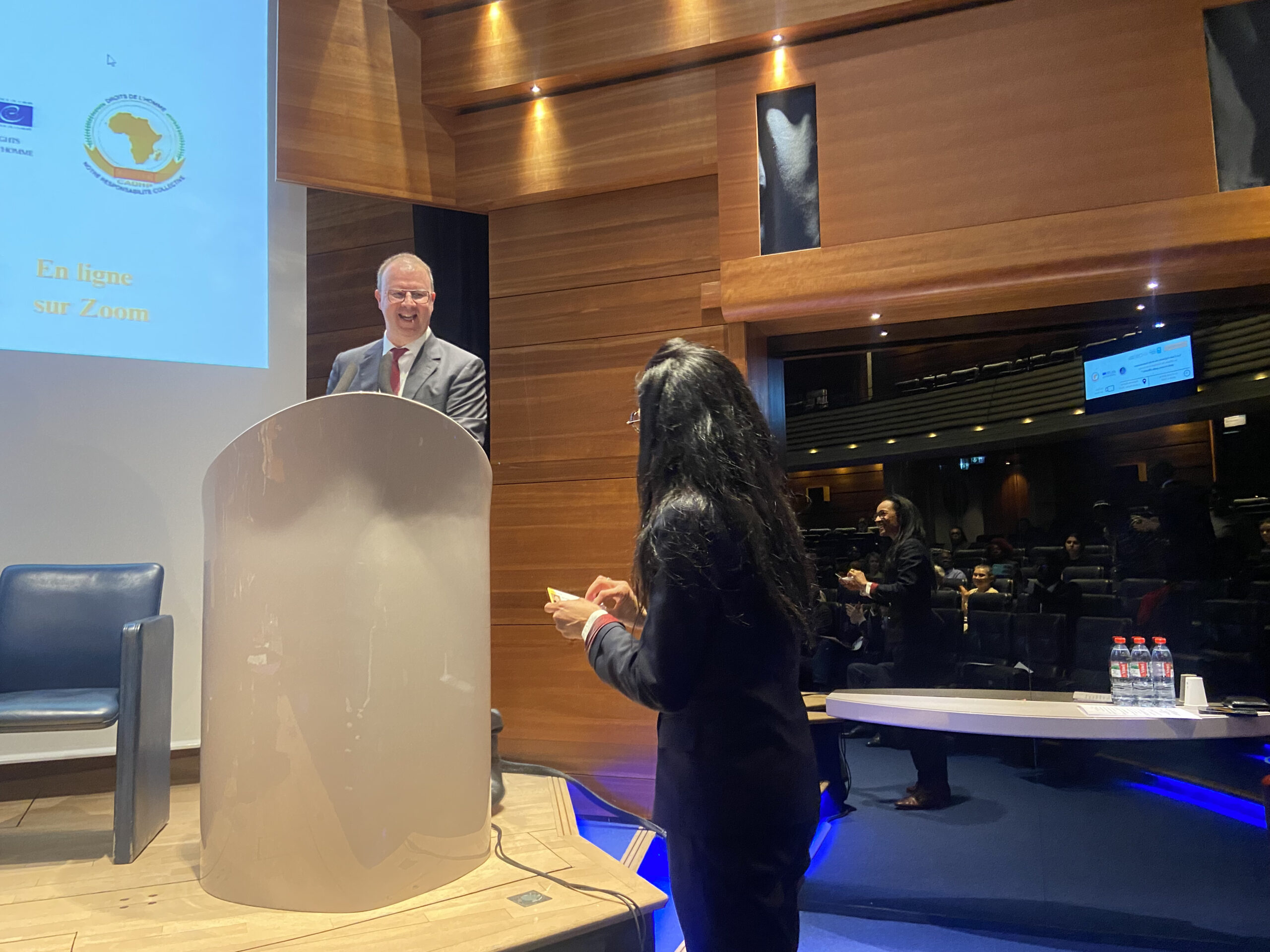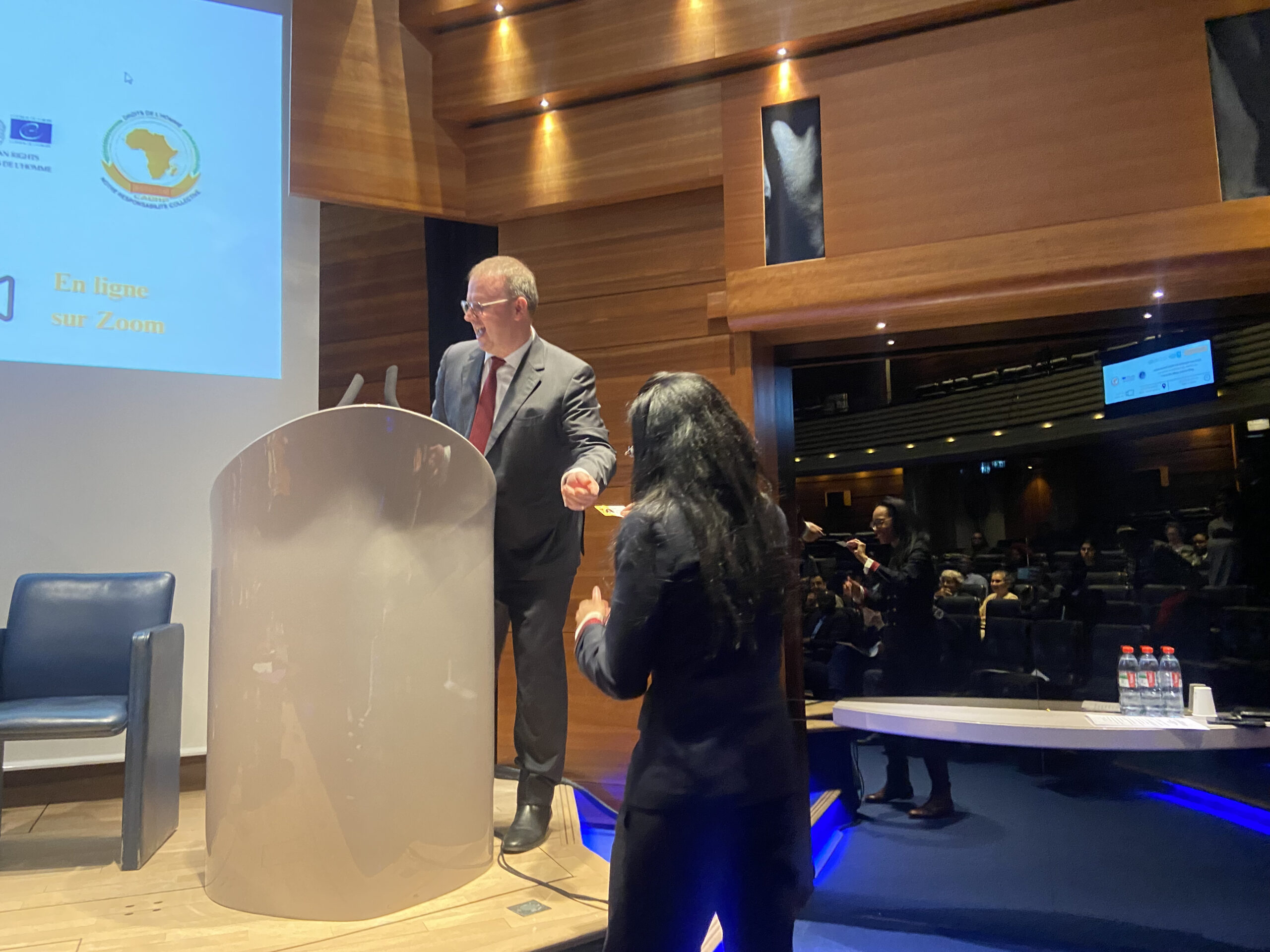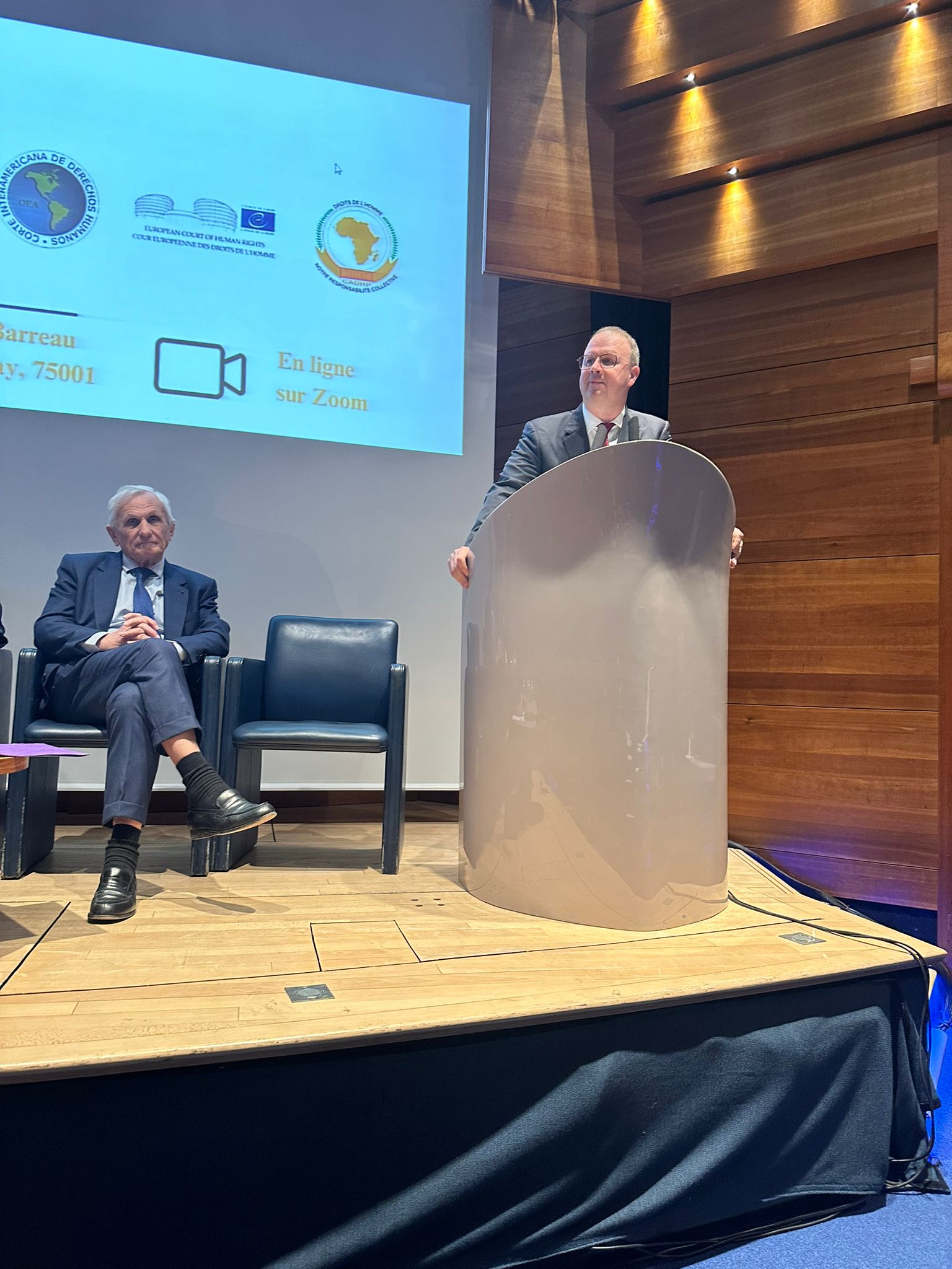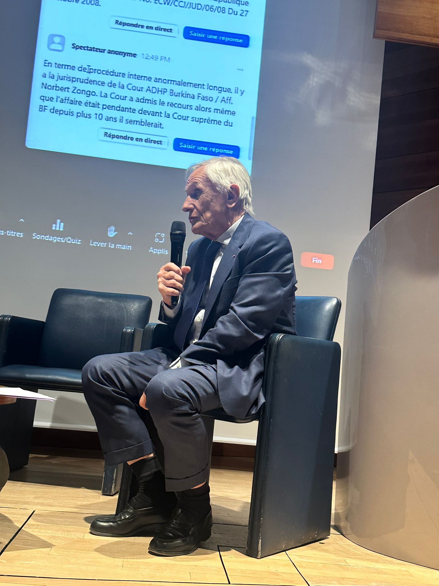 Dans le cadre de cette approche comparée, le Juge Blaise Tchikaya nous a éclairés sur le rôle et l’histoire de la Cour africaine des droits de l’Homme et des peuples, dont le rayonnement et la compétence en font une juridiction de choix pour les défenseurs des droits, lorsque dans leurs pays, les conditions ne sont pas réunies pour leur permettre d’accéder à une justice équitable, impartiale et qui se veut respectueuse des droits de la Défense. Nous avons également pu l’écouter sur le rôle de cette juridiction qui venu consacrer la notion de « Peuple » et le respect des droits de ces peuples.