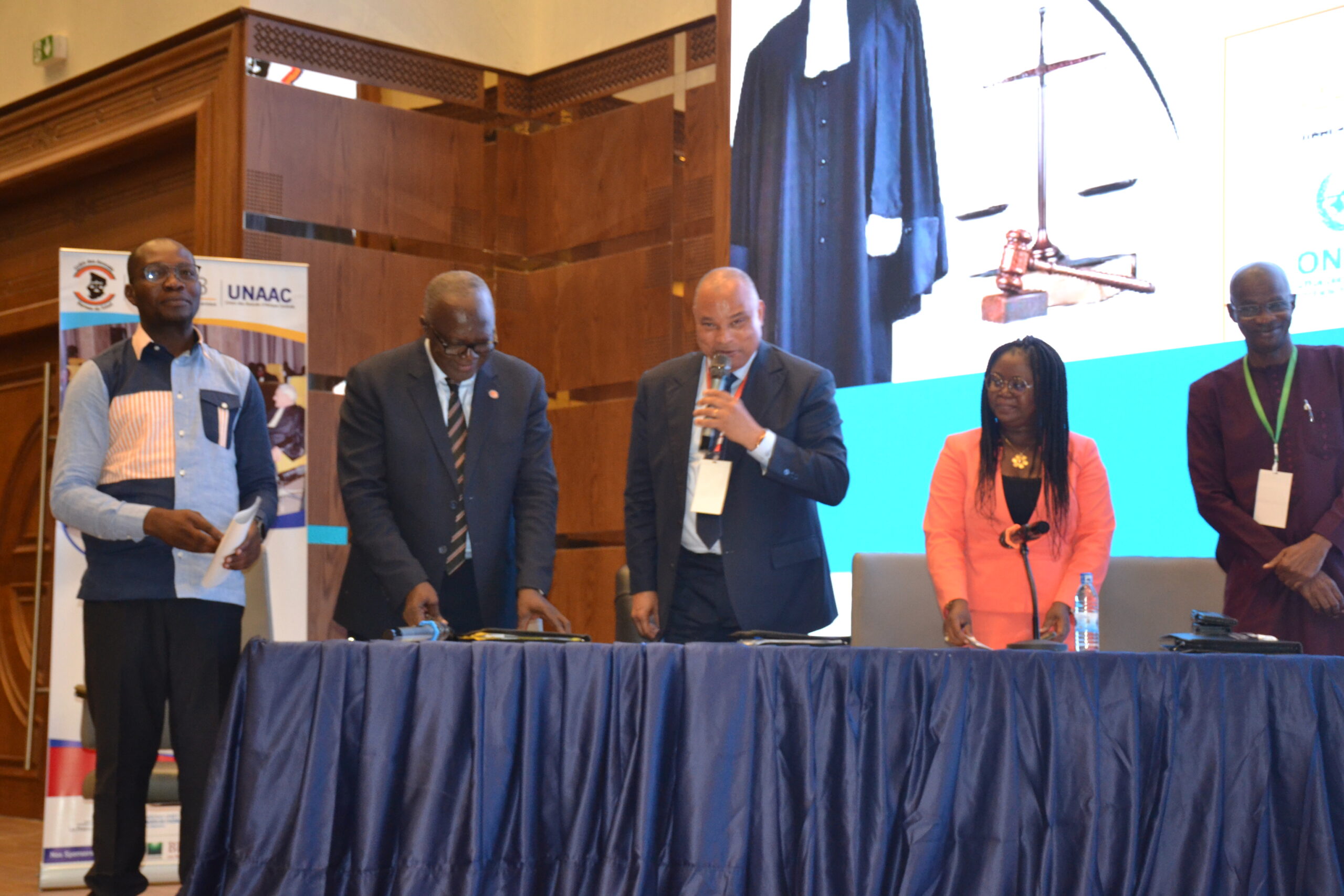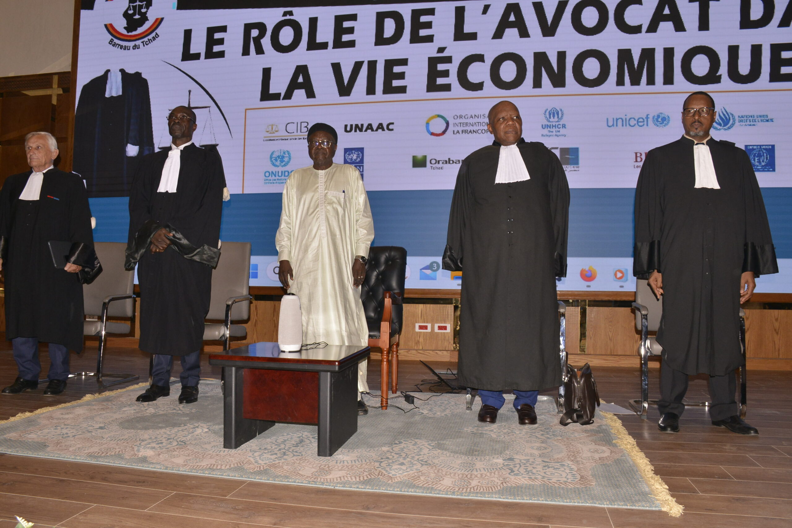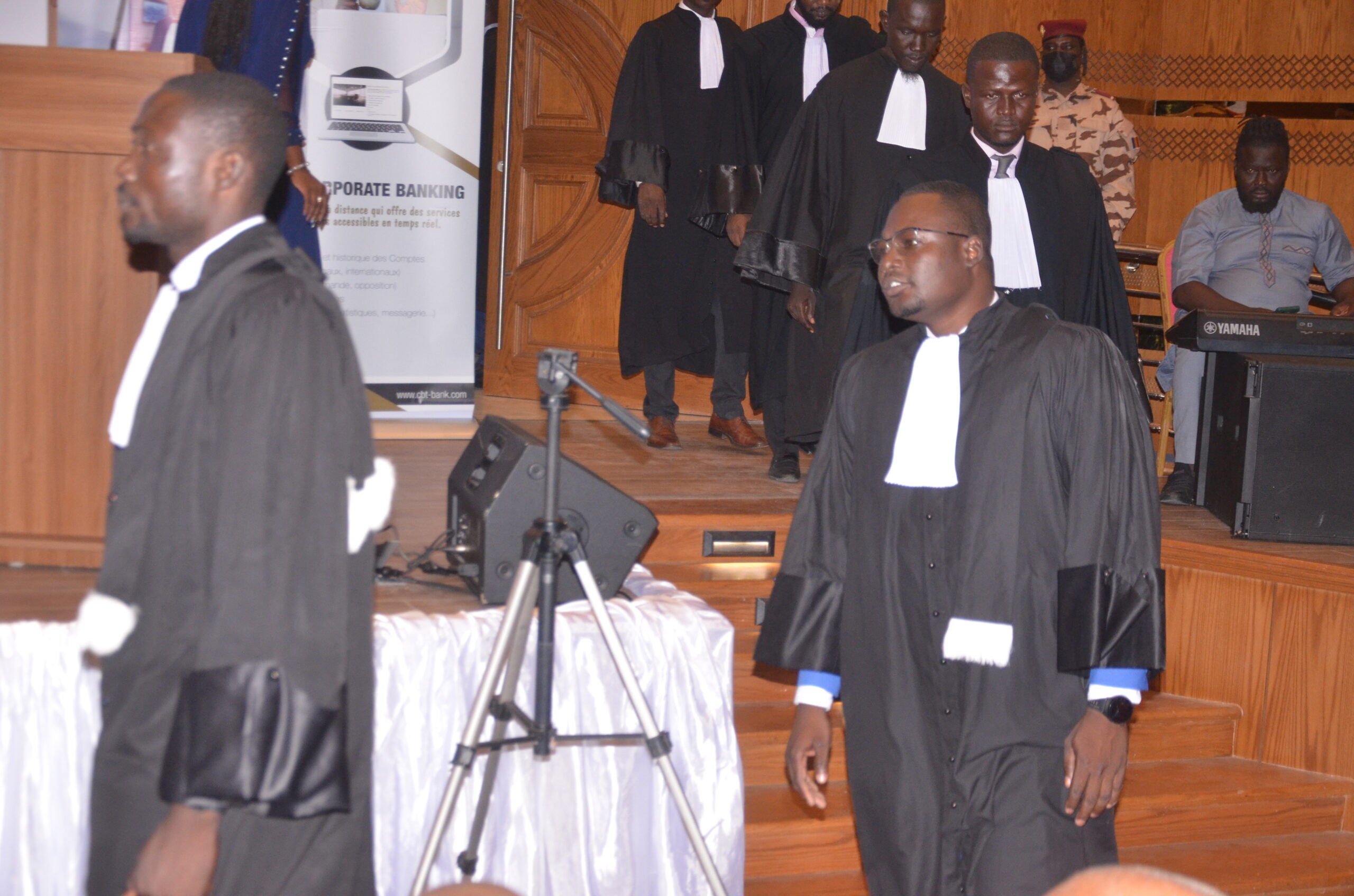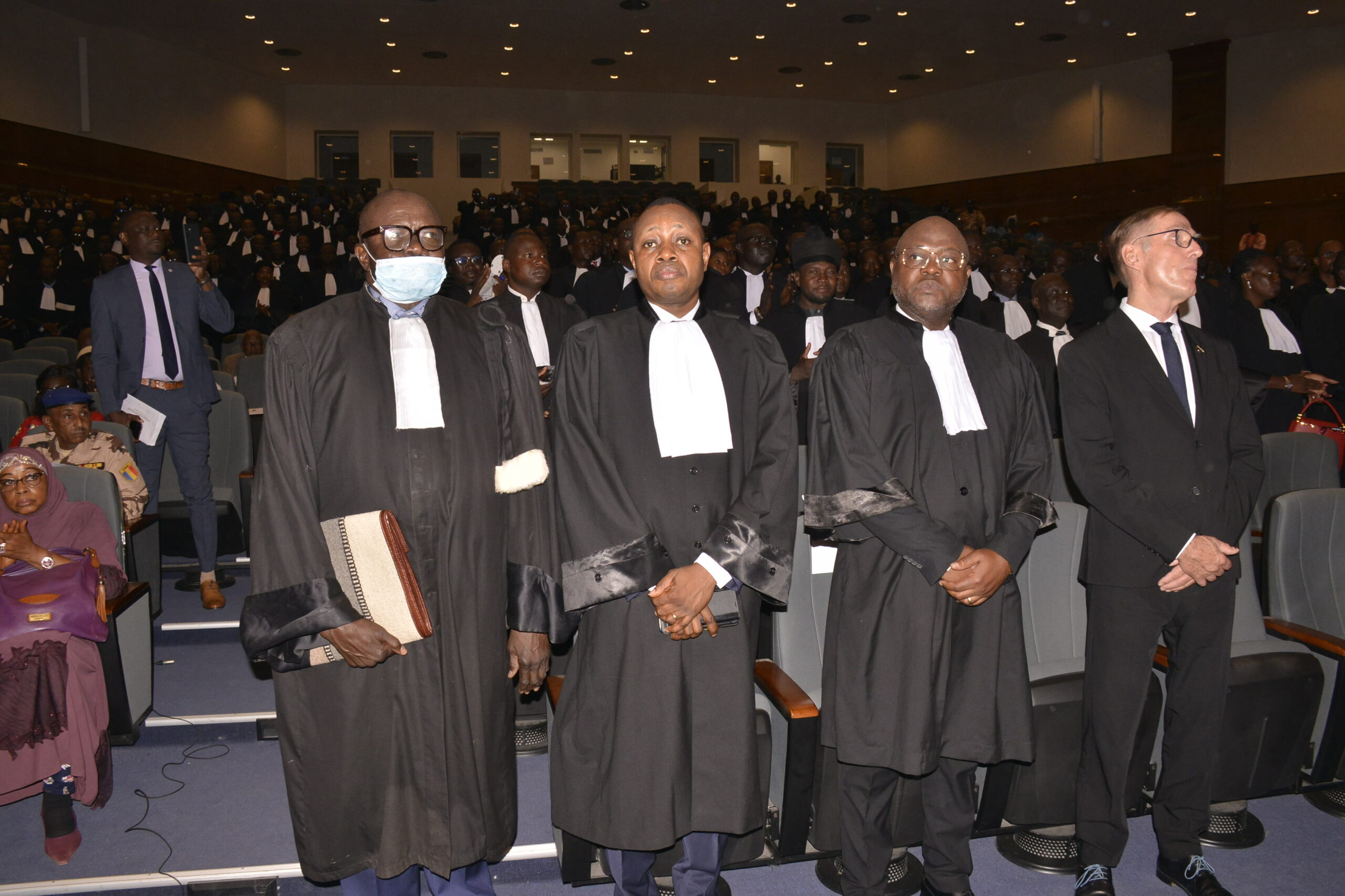 La cérémonie a commencé par l’arrivée, en toge, de chacun des avocats inscrits au barreau du Tchad, entrant séparément par ordre d’inscription au barreau dans l’hémicycle du centre de conférence du Ministère des Affaires étrangères du Tchad, où avaient lieu les travaux. Elle s’est poursuivie par les discours particulièrement riches rappelant la place et l’importance du barreau dans les institutions démocratiques, qui est un interlocuteur précieux pour toute question qui touche à la justice, aux droits humains et naturellement à la profession d’Avocat et son exercice.