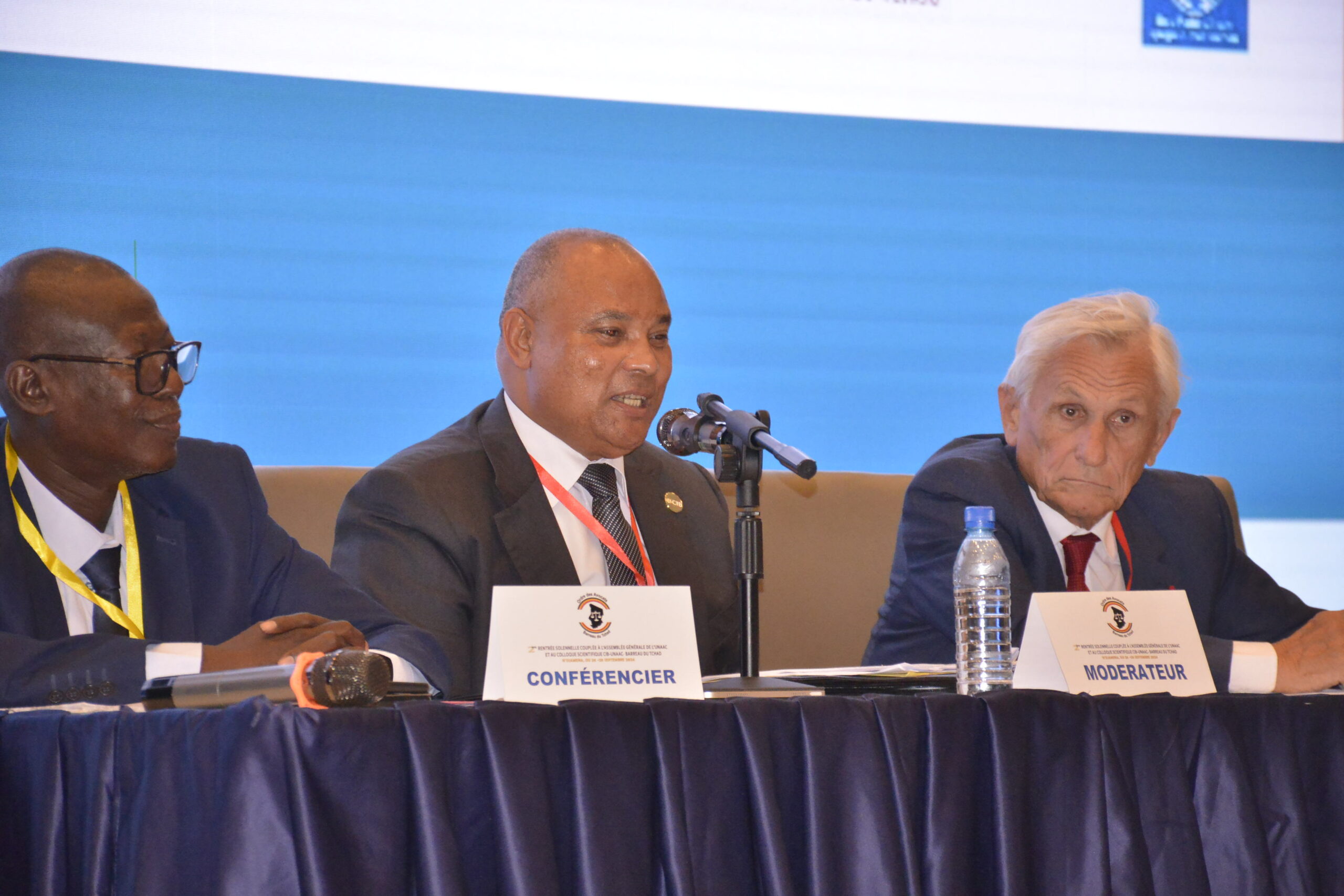 La rentrée des avocats du barreau du Tchad s’est déroulée en présence du Ministre de la Justice et des droits humains, son excellence Monsieur Abderahim Bireme Hamid, du Bâtonnier du barreau du Tchad, Maître Laguerre Djerandi Dionro, du président de l’Union des Avocats d’Afrique centrale, le Bâtonnier Patrice Monthé et du Secrétaire général de la CIB, le Bâtonnier Bernard Vatier qui est intervenu pour le compte du Président de la CIB, Maître Jean-François Henrotte qui par suite d’un empêchement dirimant ne pouvait pas prendre part à la cérémonie. Le Bâtonnier Vatier a pris également la parole pour le compte du représentant de l’OIF, qui avait souhaité faire connaître l’intérêt de l’OIF à cet événement. Il a été suivi par le discours du Président du PALU (Panafrican Lawyer Union), Maître Kari ABDOUL BAGUI.