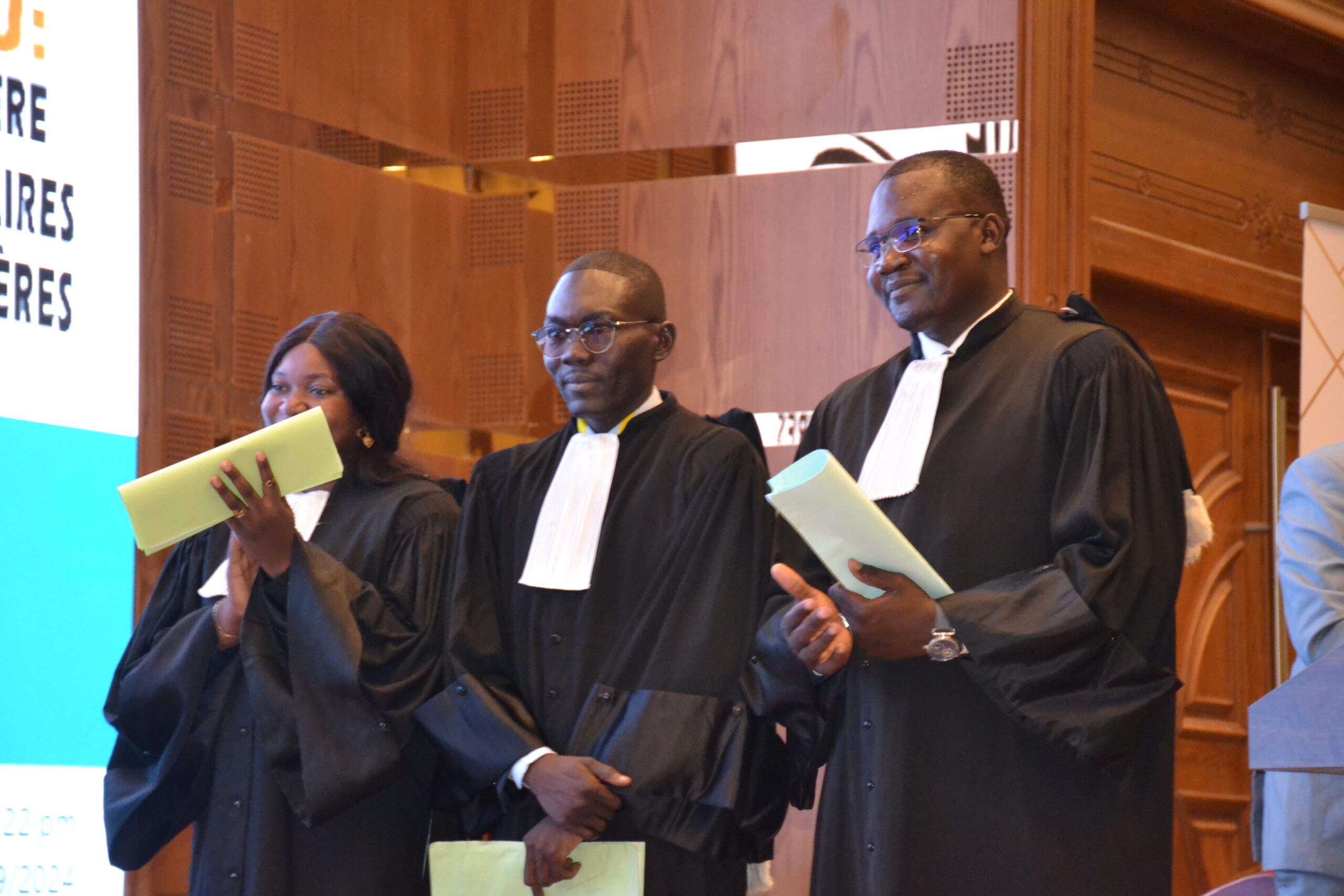 Le colloque de rentrée du barreau du Tchad a été clôturé par la finale du Concours d’éloquence du barreau du Tchad où nous avons pu écouter Maître Masde ADOUMNGAR (Lauréat), Maître Radene Sylvianne CONFORT KODENGAR (2ème place) et Maître Djoitanan TAMDIRA (3éme place). Le lauréat du concours s’est vu offrir une année d’adhésion à la CIB, sa carte de membre lui a été remise par le Directeur exécutif, Monsieur Ismael Sambaré, représentant la CIB à cette occasion.